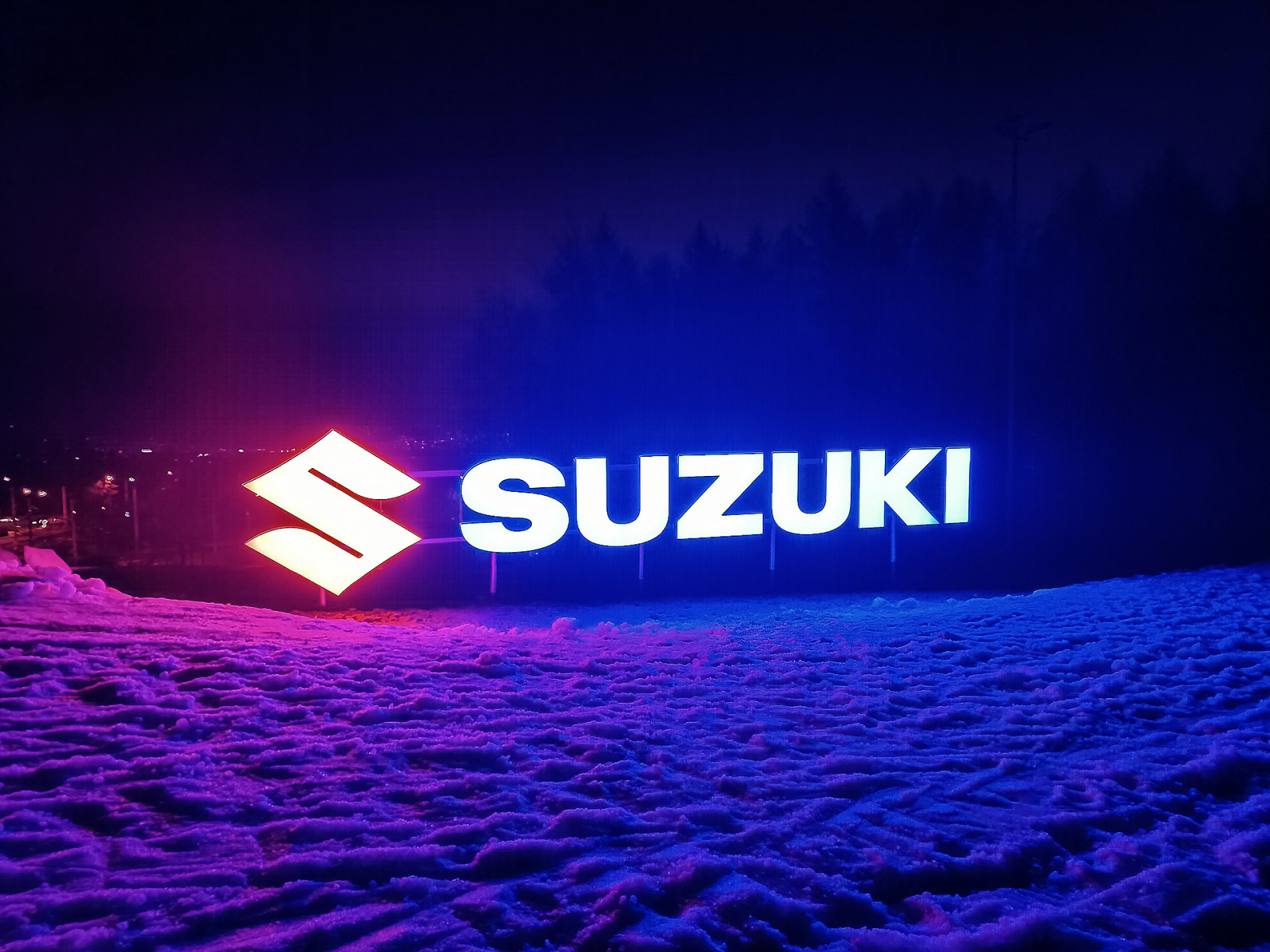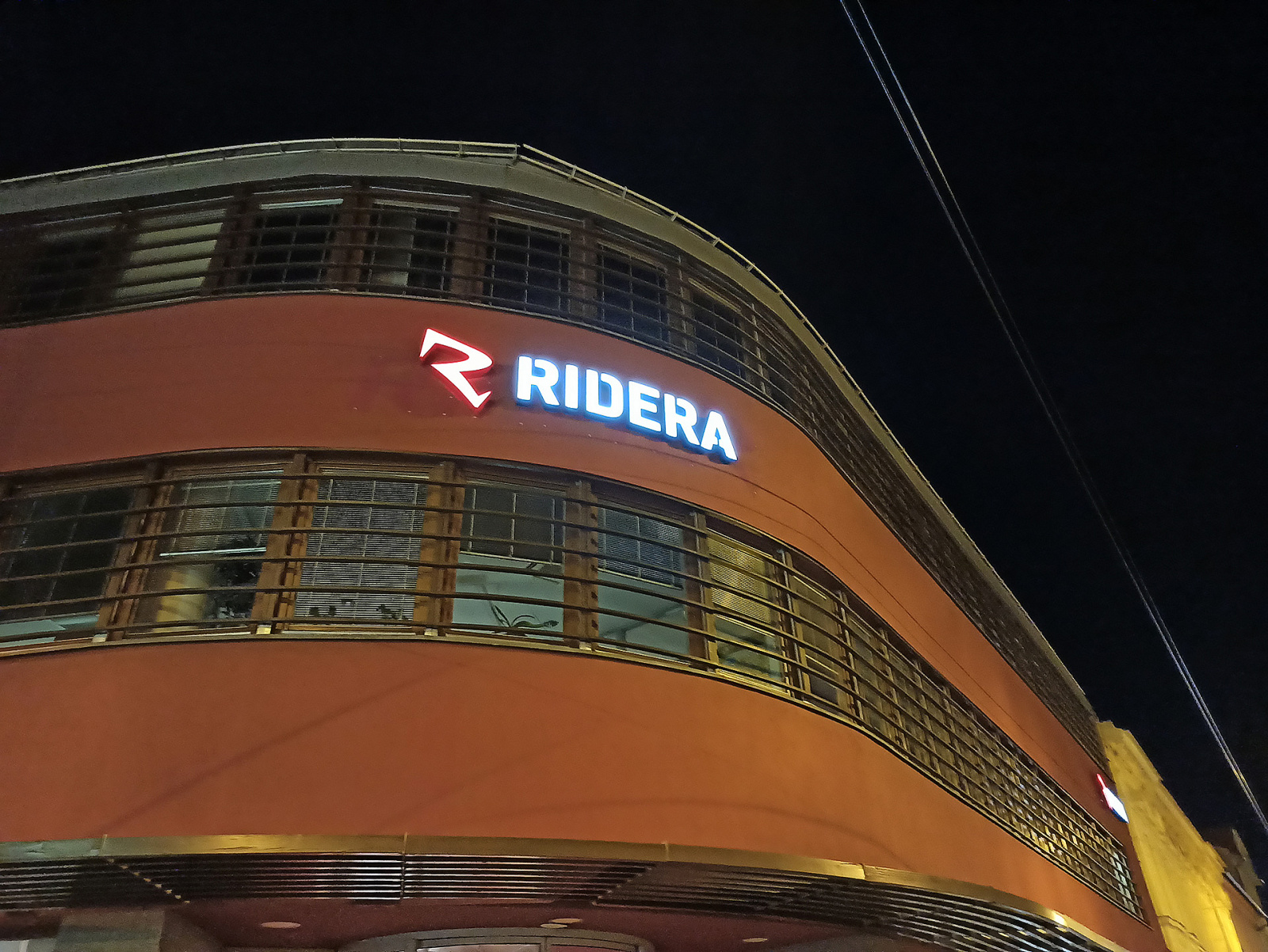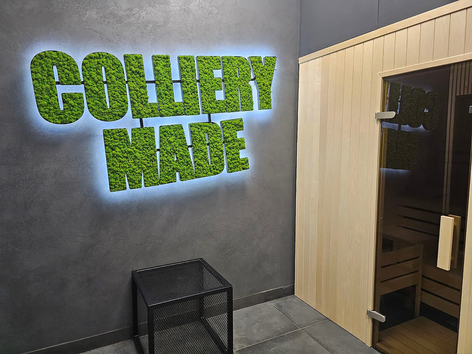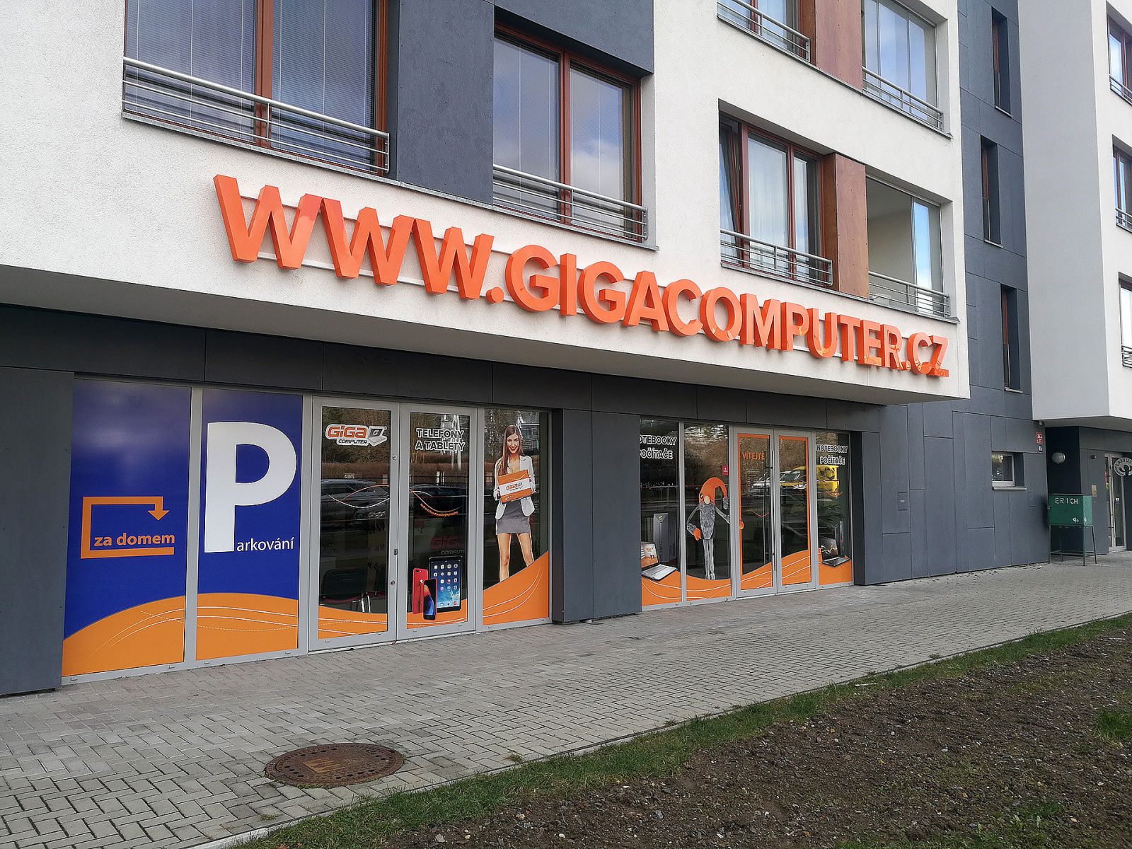 - 3D logo osvětleno ze zadní části, světlo se odráží od fasády.